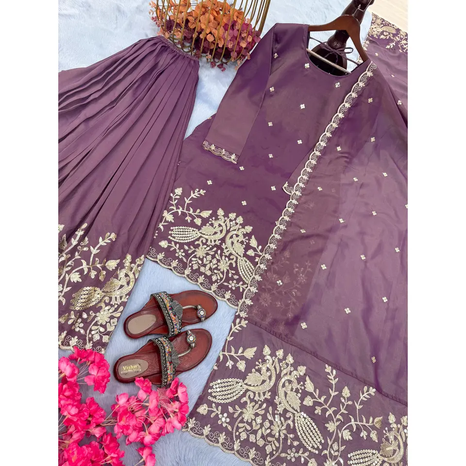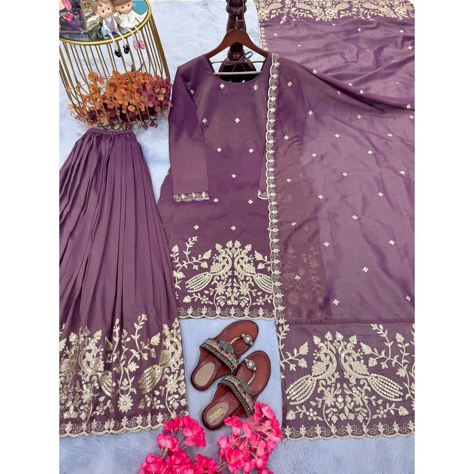 Pure Twill Gold Net with embroideryPlazzo Fabric