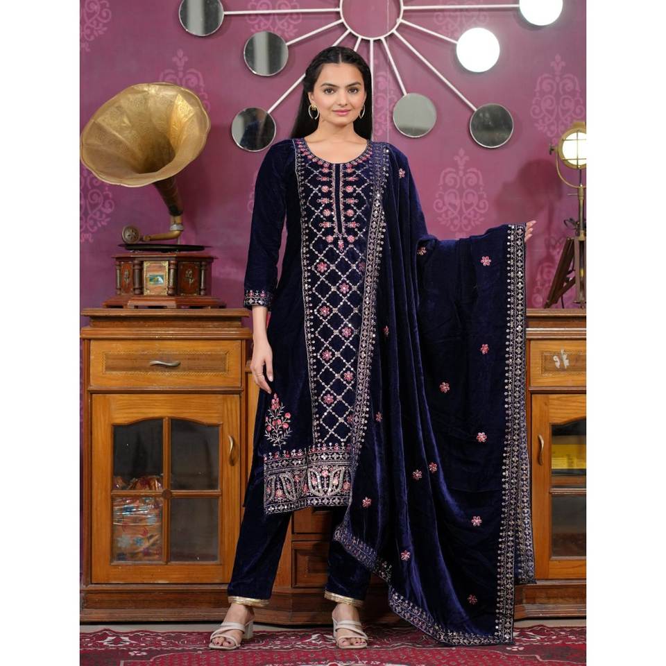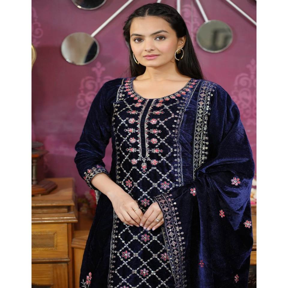 Traje de Fiesta con Diseño Floral y Bordado de Lentejuelas