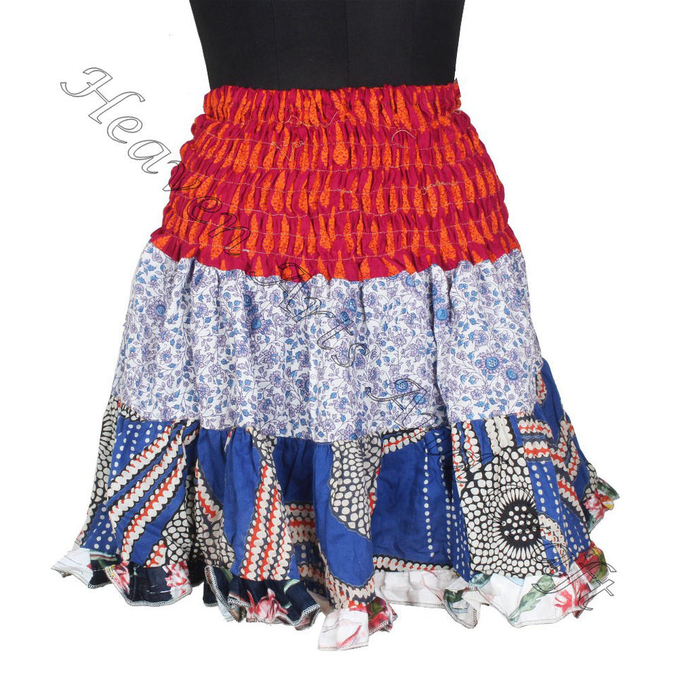 Palabras clave:Mini falda con parches de sari de algodón vintage