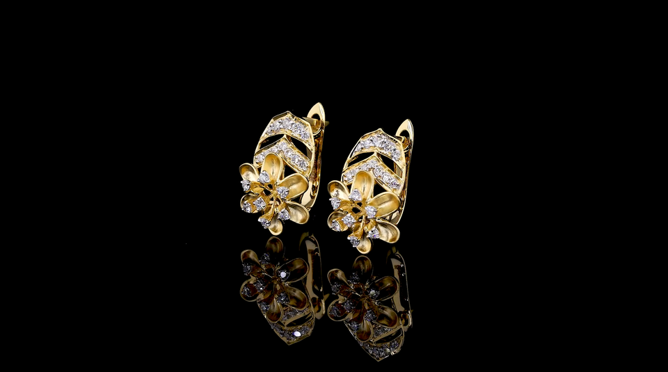 Pendientes de Diamantes Cultivados en Laboratorio con Diseño Floral Vintage | Joyería de Lujo para Boda en Oro Sólido de 14K con Certificación IGI