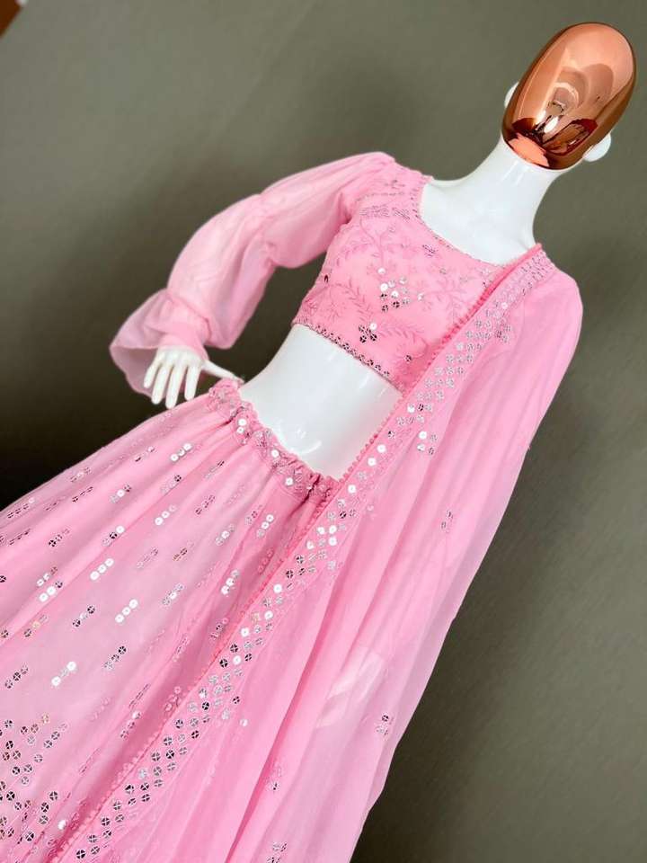 Diseñador Georgette Lehenga Choli con bordado de secuencia para mujeres Ropa de boda y fiesta étnica india a precios de mayorista