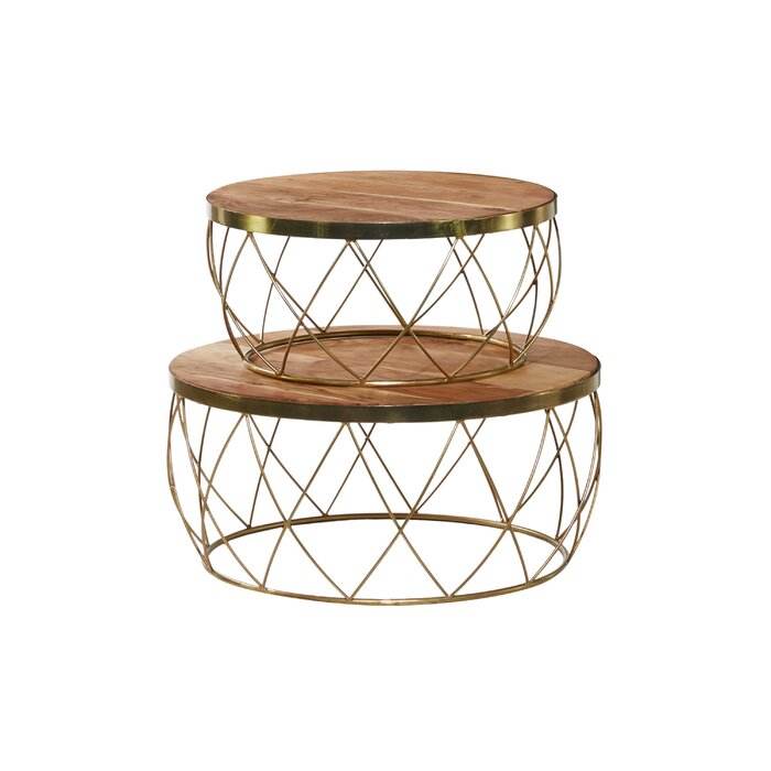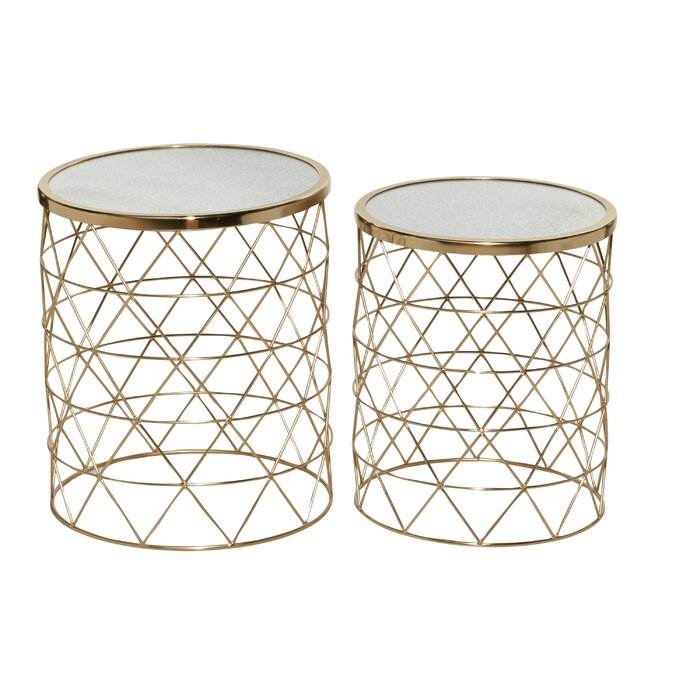 Juego de Mesas Nido de Metal con Acabado Dorado de Diseño y Superficie Texturizada para un Estilo Interior de Lujo