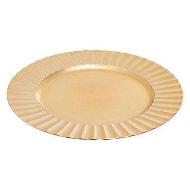 Plato de presentación de metal dorado de diseño para mesa de comedor, banquete de boda, vajilla elegante y lujosa con acabado duradero