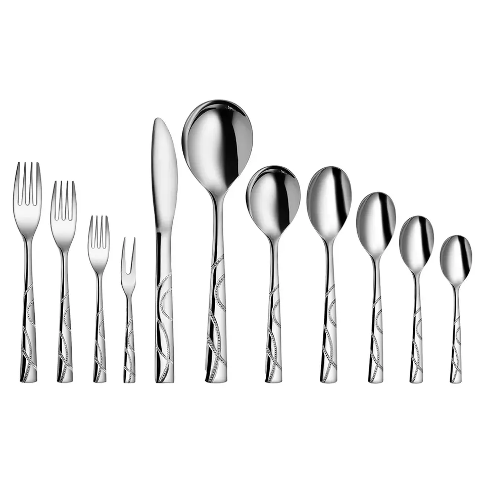 Juego de cubiertos completos de 11 piezas hechos a mano de diseñador, acero espejado de calidad de fábrica con acabado pulido plateado, nueva colección