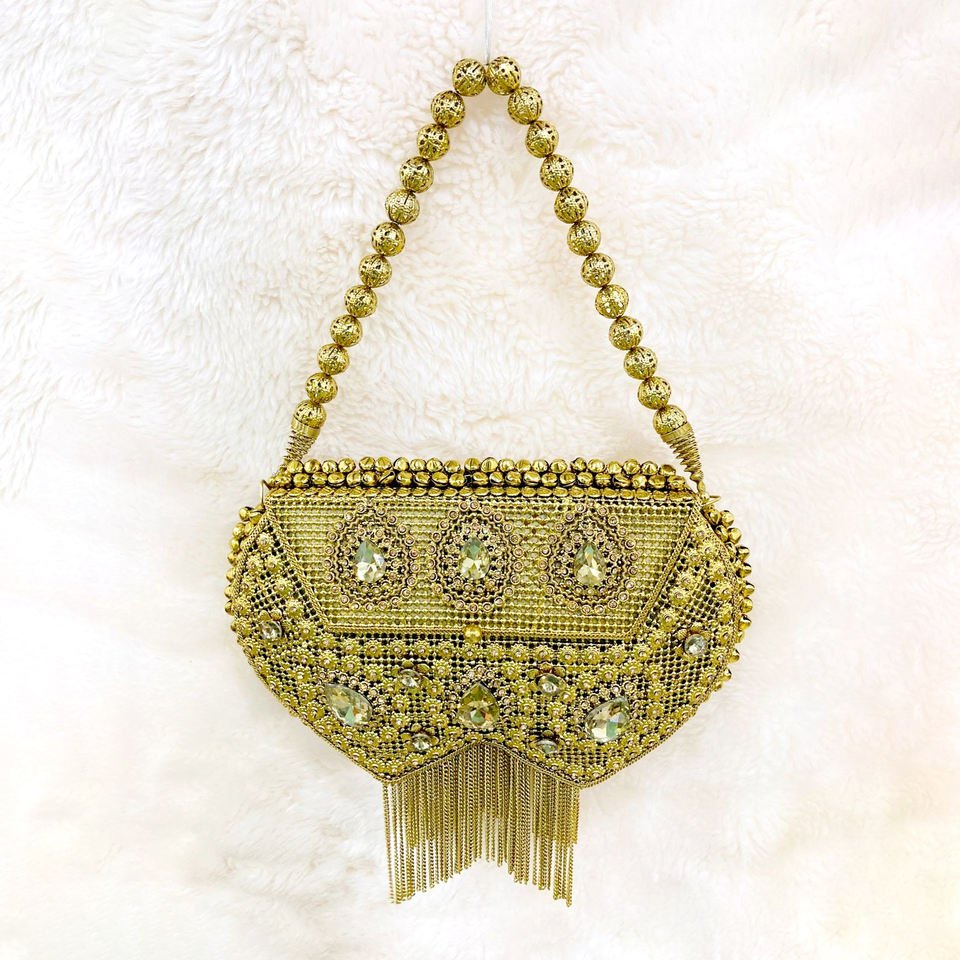 Diseñador hecho a mano señoras noche embrague piedra de cristal y metal profusamente detallado para la elegancia atemporal en eventos