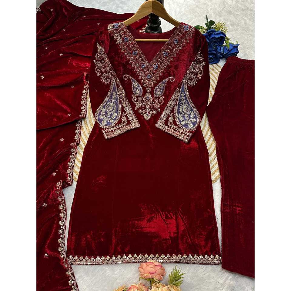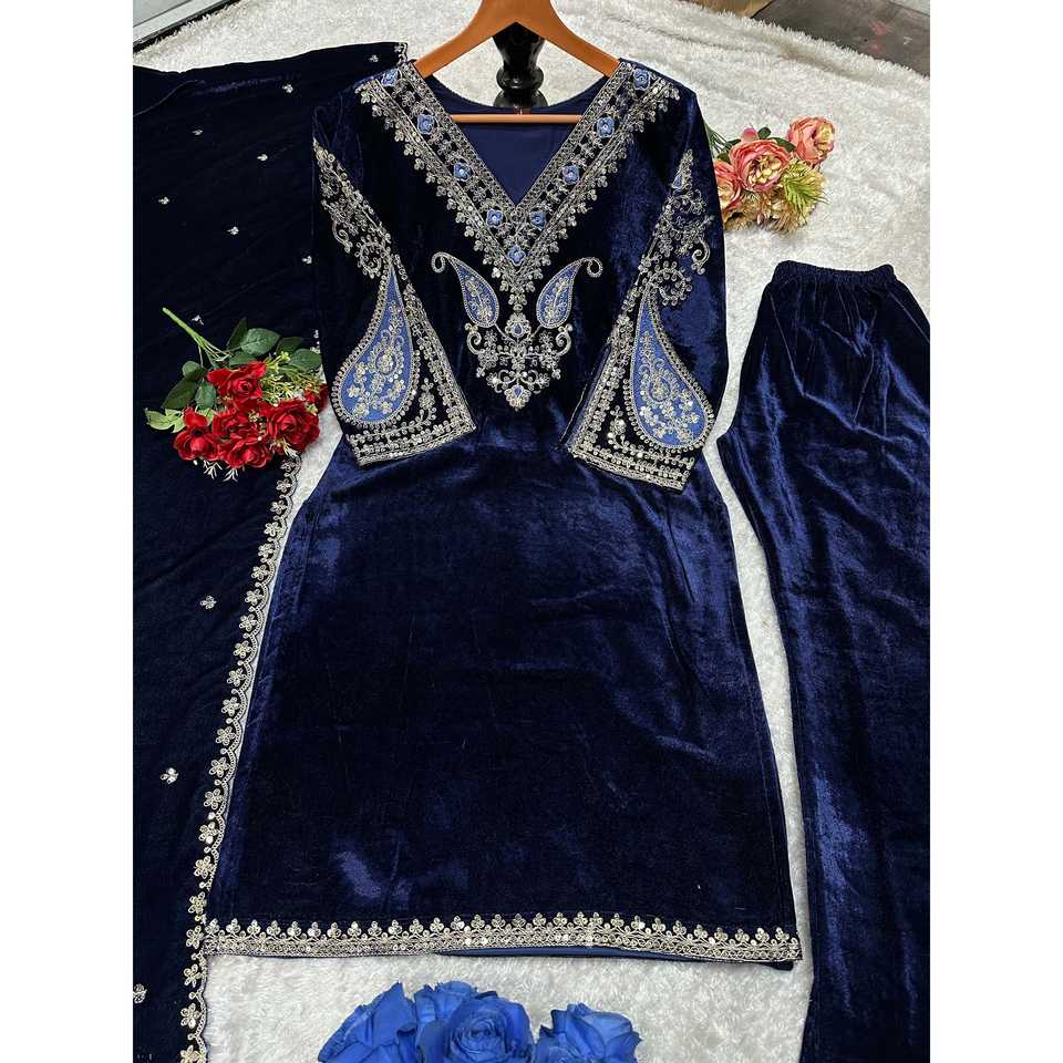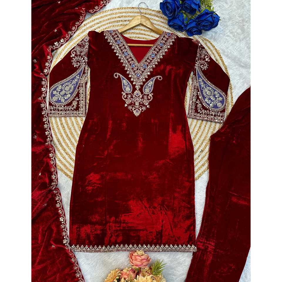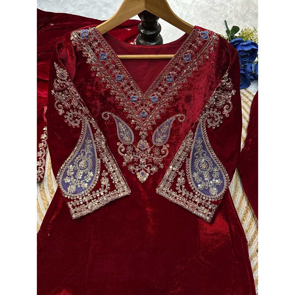 Conjunto de Fiesta Valam de Diseño Exclusivo: Top de Terciopelo con Cuello en V, Silueta en A, Hecho a Mano, con Falda y Dupatta Bordados