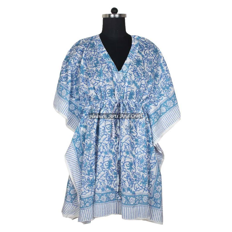 Túnica de Algodón Hecha a Mano con Estampado de Bloques, Ropa Casual de Verano, Vestido Corto Tipo Kaftán con Estampado de Bloques, el Mejor Regalo para Ella