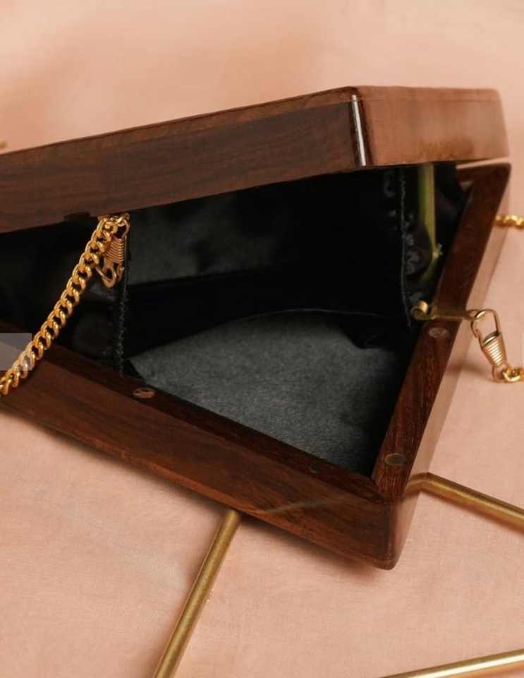 Nombre del Producto:Bolso de mano de madera de diseño con asa de latón