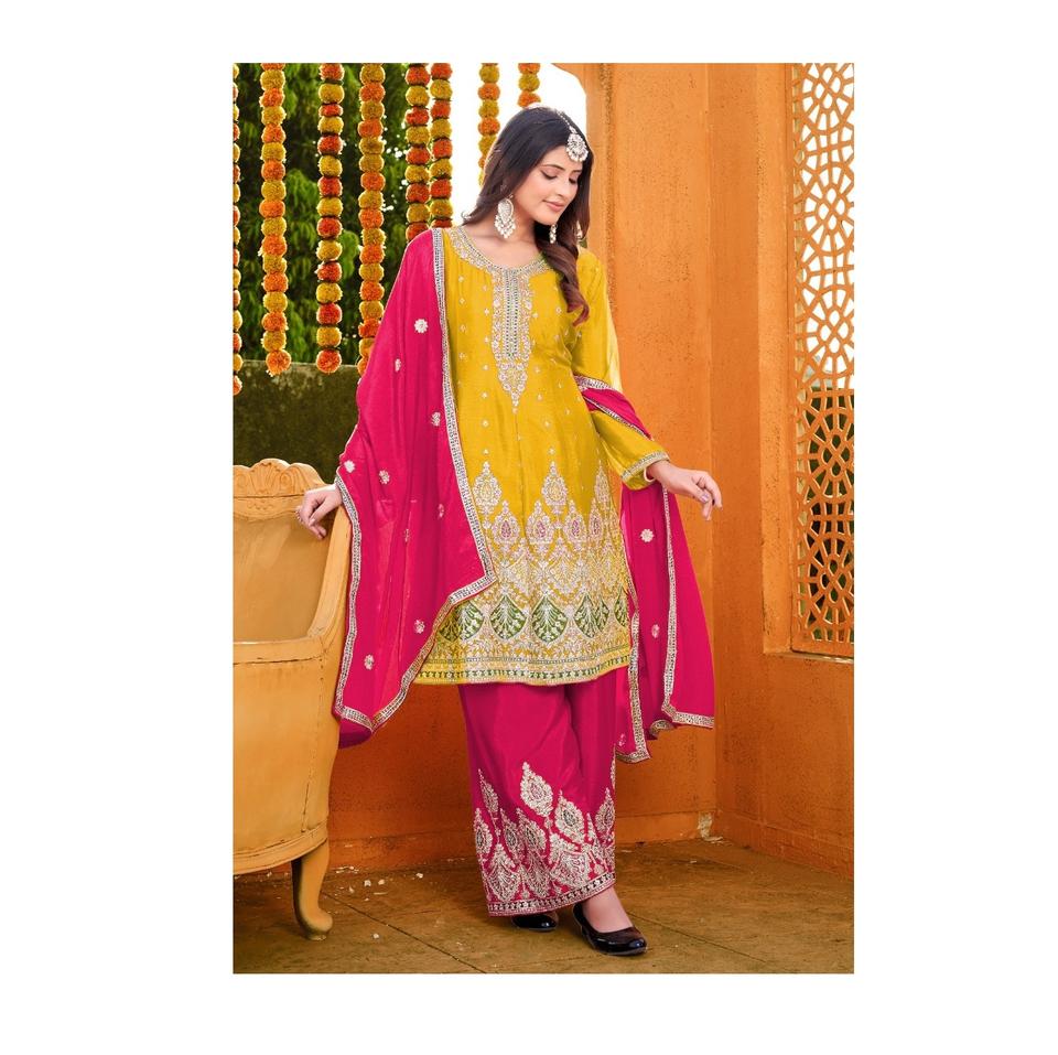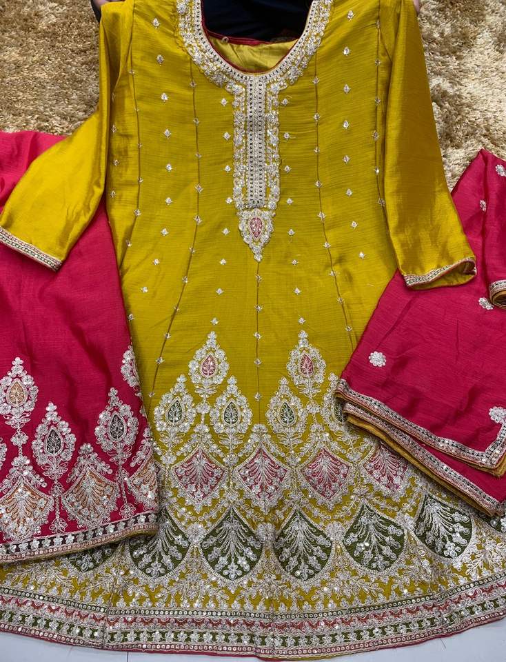 Chinon pesado de diseñador con traje Salwar DE TRABAJO bordado para mujer, ropa de fiesta y recepción de India Export