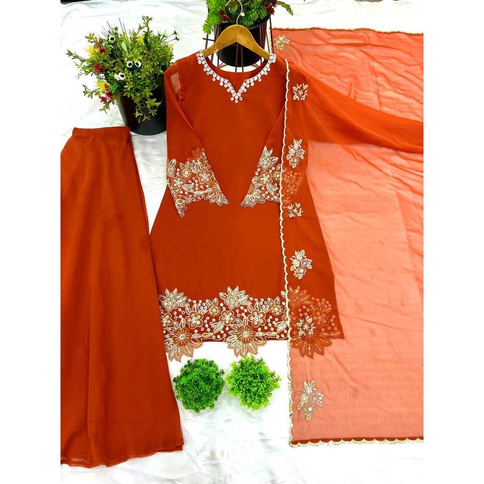 Conjunto de Diseñador con Bordado Pesado y Lentejuelas, Top, Pantalón y Dupatta, Talla XL
