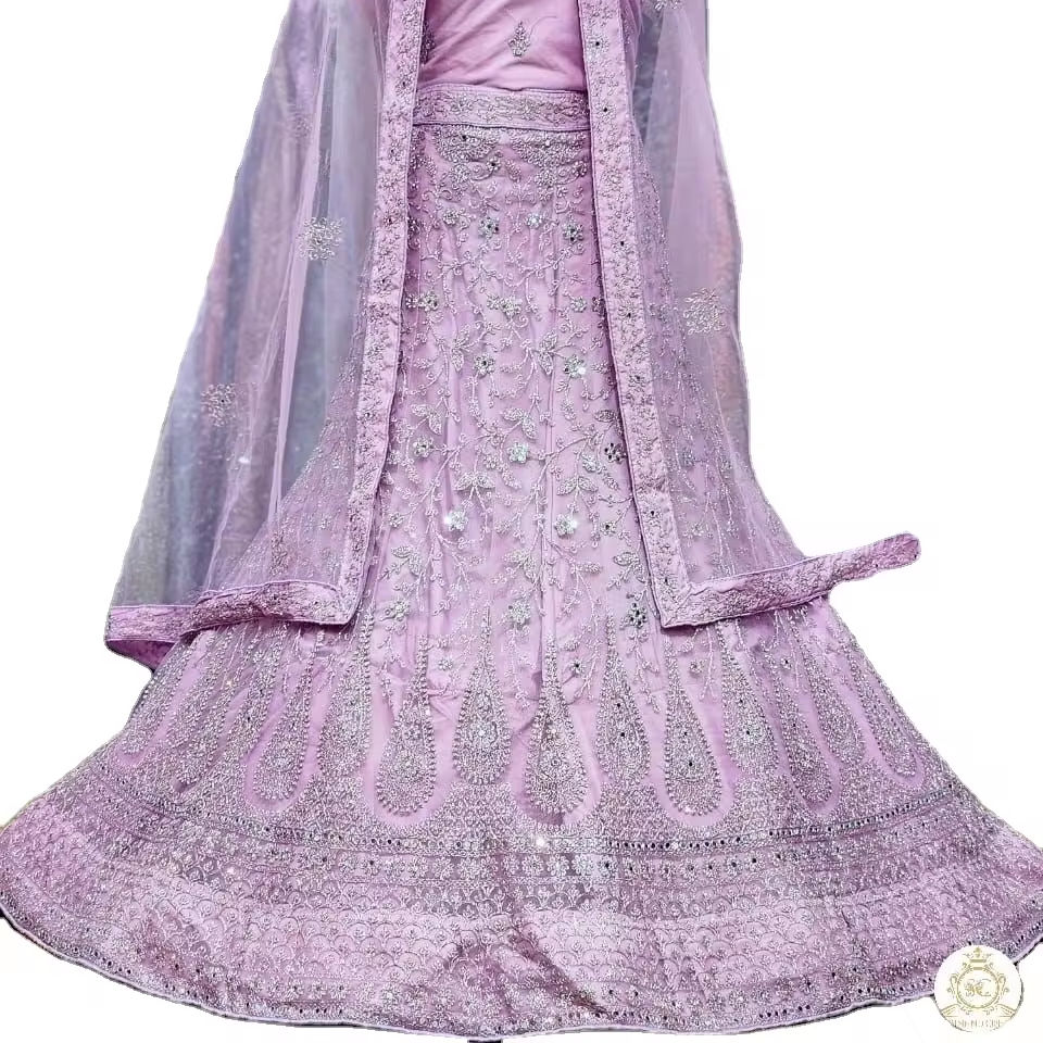 Diseñador Heavy Mirror Bordado Trabajo Lehenga Choli Estilo indio y pakistaní Boda y ropa nupcial en tela de red
