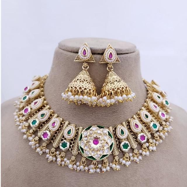 Conjunto de collar de diseño de alta calidad con aspecto de piedra, conjunto de Collar chapado en oro con pendientes para colección de ropa de boda para mujer