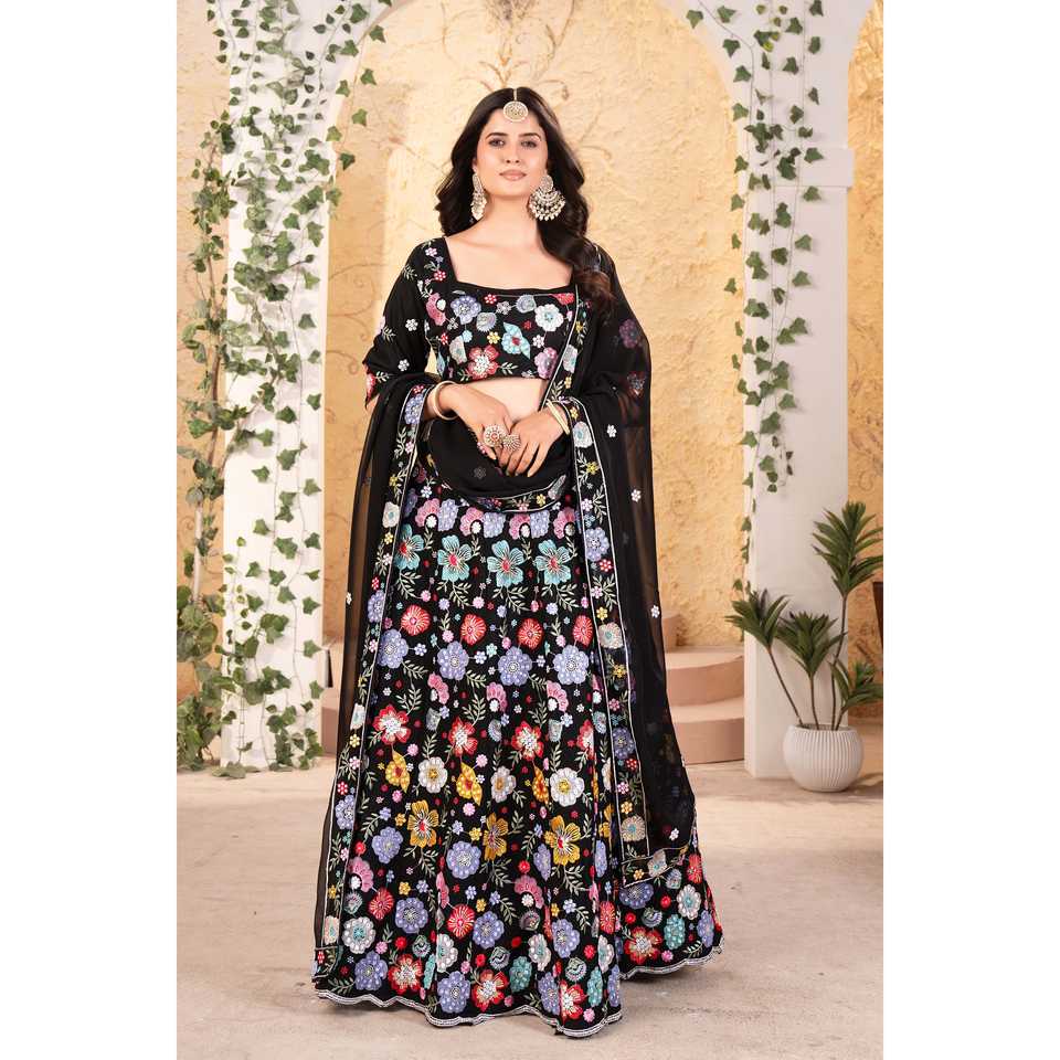 Ropa de Diseño India y Pakistaní, Hermoso Trabajo de Bordado Multihilo, Lehenga Choli