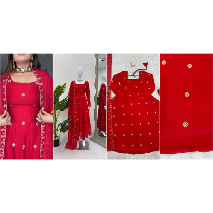 Traje de diseñador indio pakistaní Georgette con bordado a mano y Dupatta pesado | Conjunto de Salwar étnico del sur de Asia para mujer