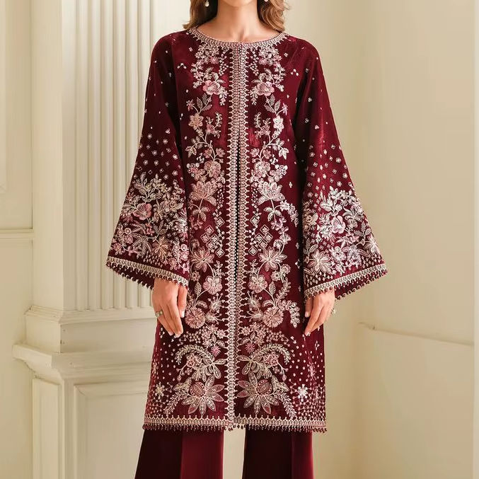 Diseñador indio/pakistaní elegante largo Kurta, pantalón y Dupatta fiesta-desgaste/vestido de novia con trabajo de bordado pesado @ 2025