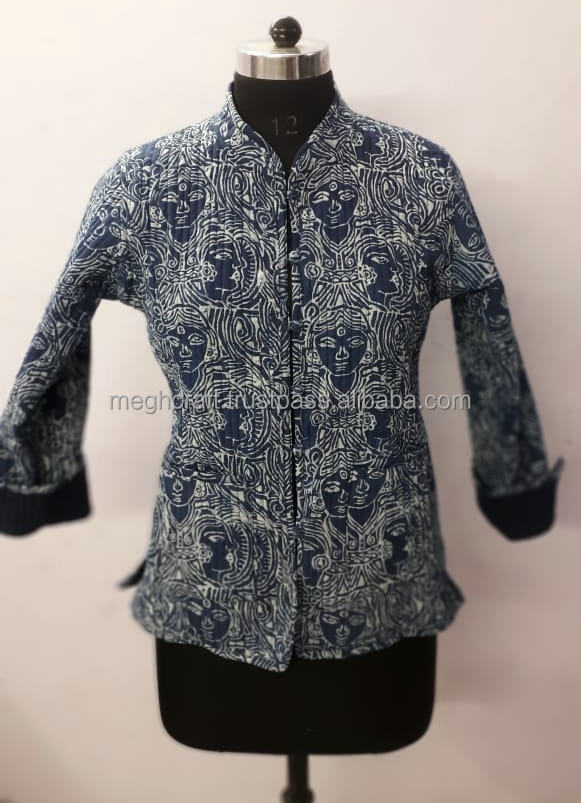 Diseñador Indo Western Chaqueta de bombardero de algodón Bordado Kantha Transpirable Ecológico Acabado Boho Moda Estilo europeo Plus