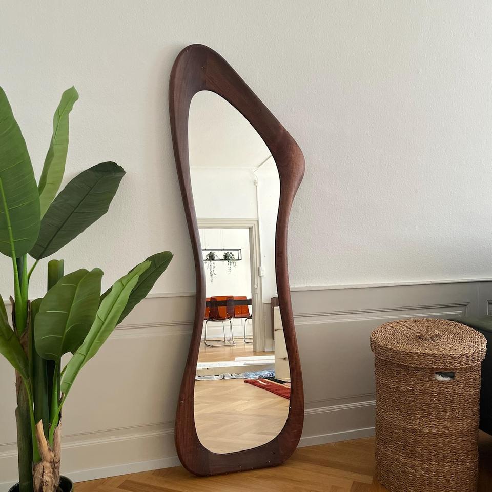 Espejo de Cuerpo Entero de Madera Irregular de Diseño Moderno, Espejo Escultural Ideal para Decoración del Hogar y Espacios de Vida, de la India