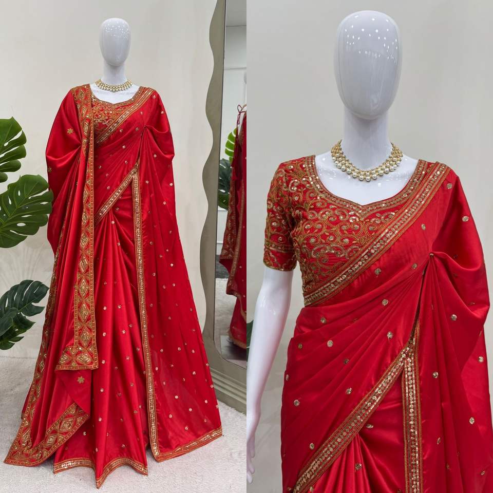 Trabajo:Encaje elegante con Havy Latkan en Pallu, liso (con encaje elegante)