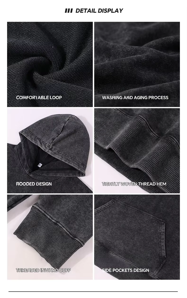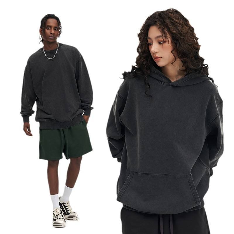 Logo de diseñador Bulk Plus Vintage Pullover Negro en blanco Unisex Peso pesado Lavado con ácido Sudaderas con capucha de gran tamaño personalizadas para hombres Sudaderas