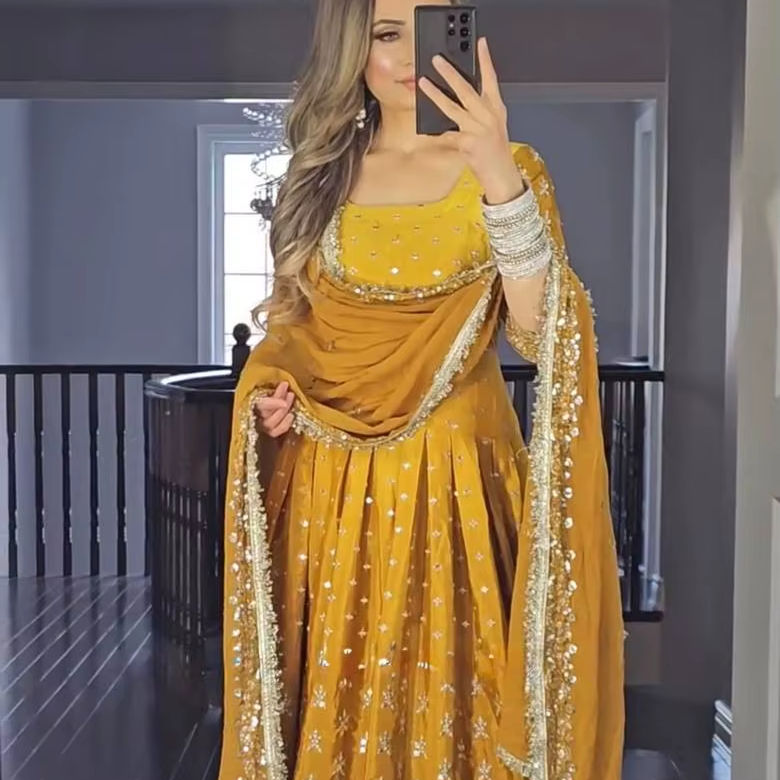 Trabajo Dupatta:Con bordado 5mm Trabajo de secuencia con borde de encaje de lujo de cuatro lados