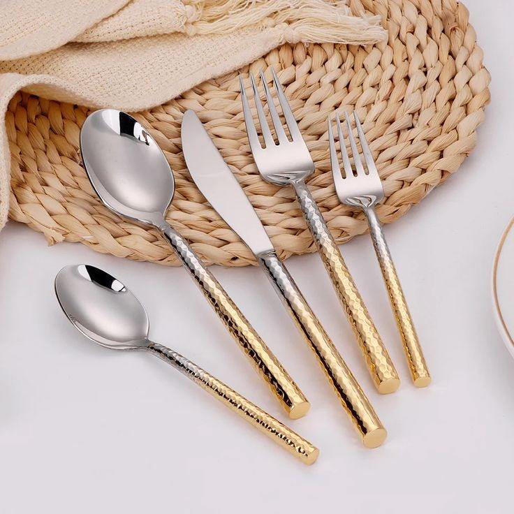 Juego de cubiertos de metal de diseño con pulido de espejo perfecto para mesa de comedor elegante y configuración de decoración de interiores del hogar
