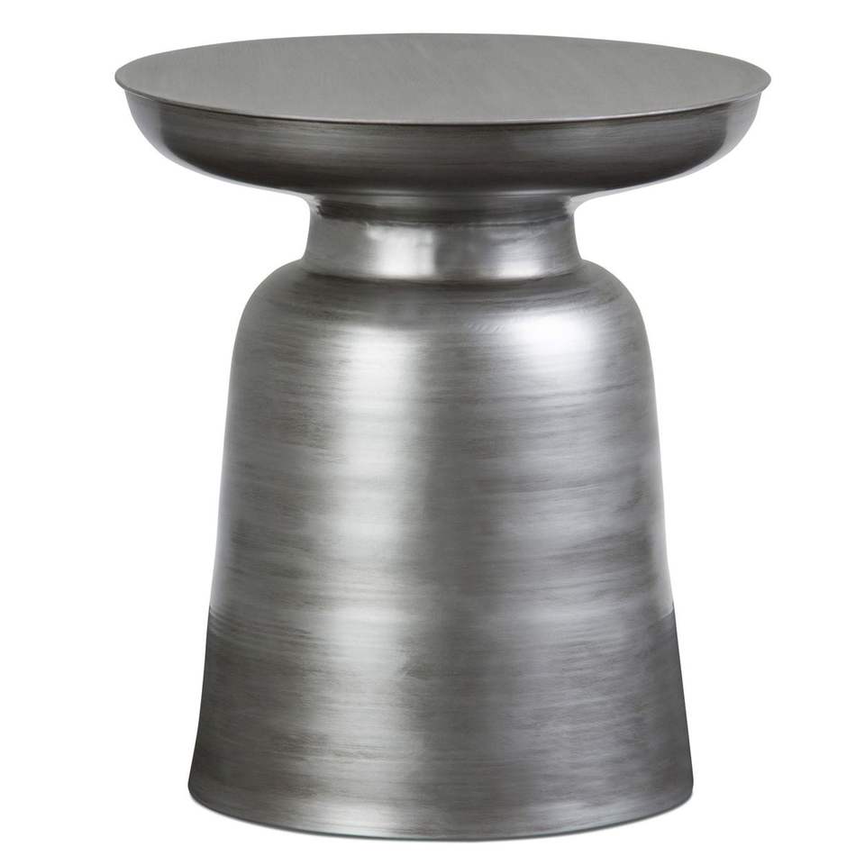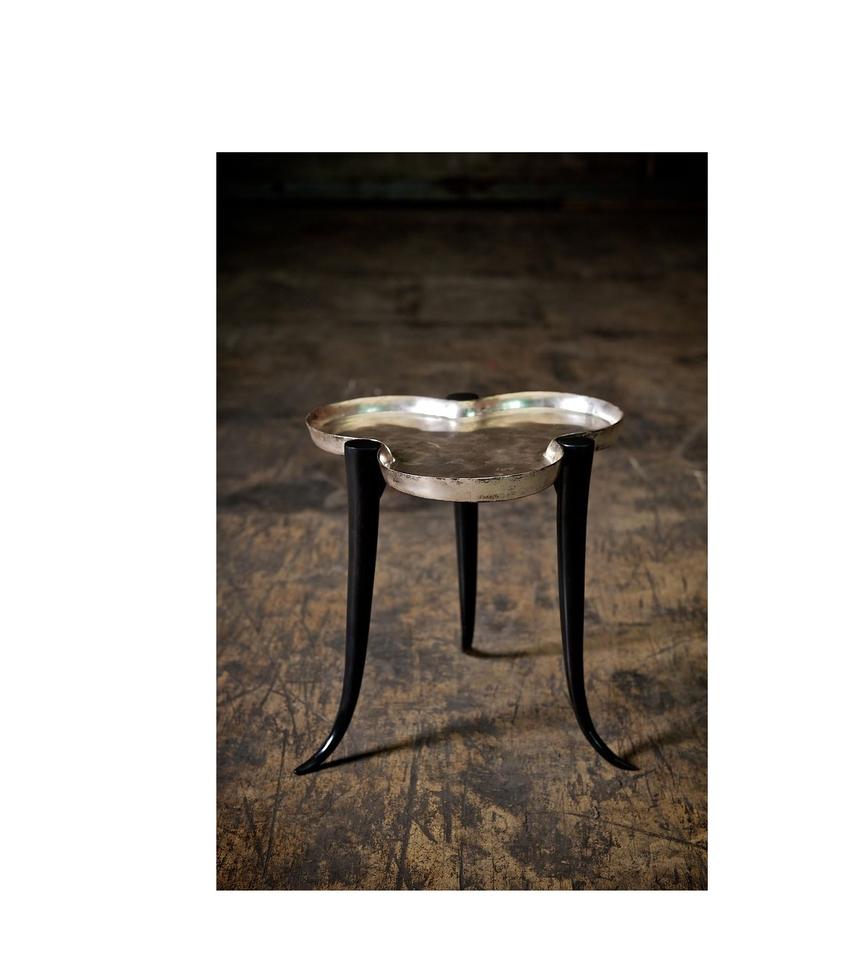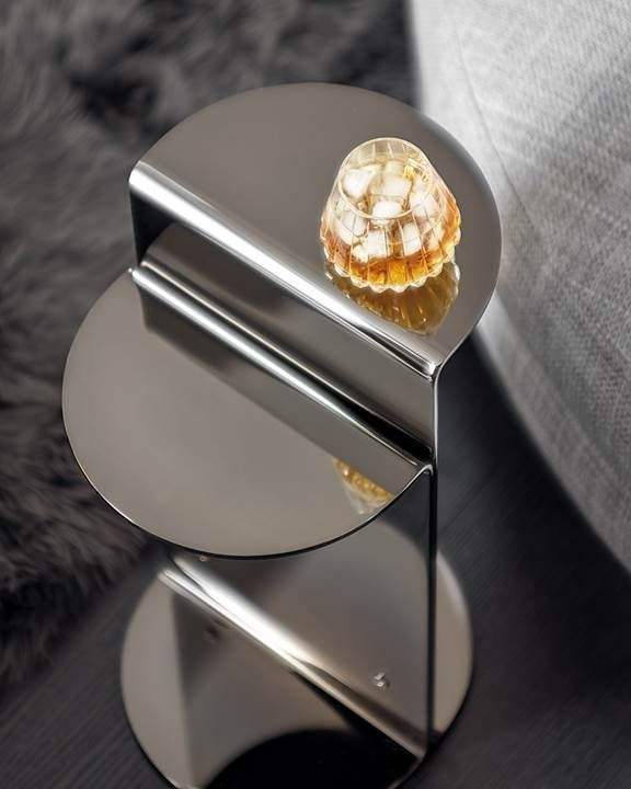 Mesa auxiliar de metal de diseño con base geométrica para espacios modernos, un elemento decorativo y un mueble funcional.