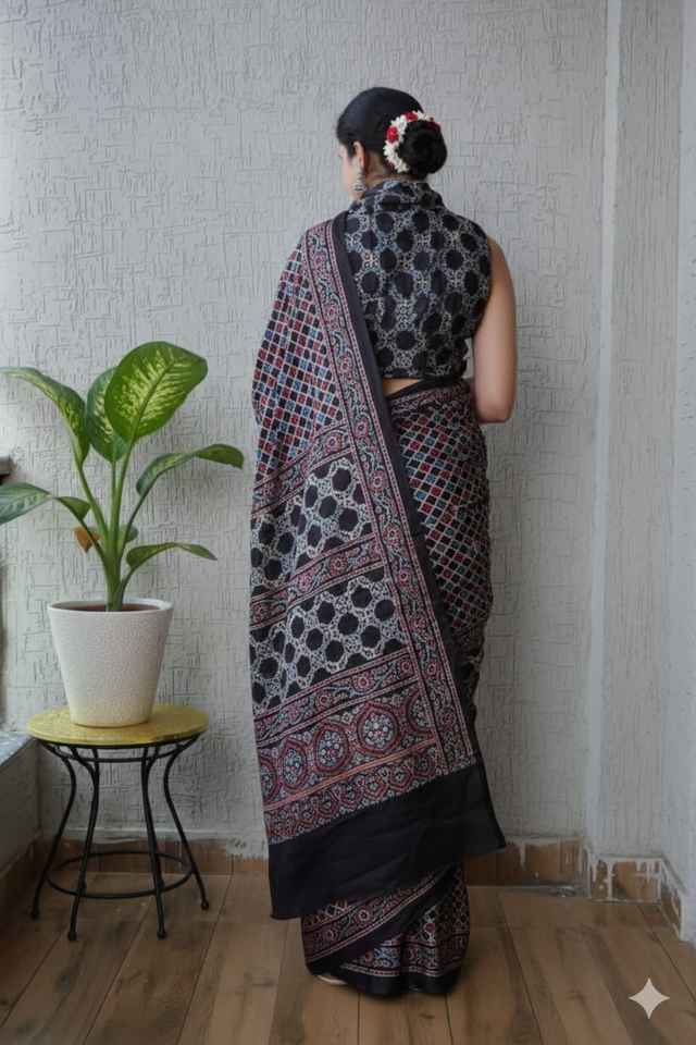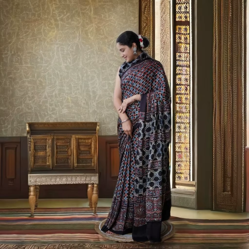 Sari de Seda Modal de Diseño, Textura Suave, Cómodo Sari Étnico