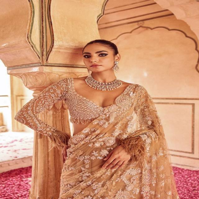 Sari de red Mono de diseñador con trabajo pesado de 5mm multy y lentejuelas con tuberías elegantes y borde Zalar