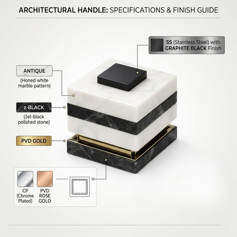 Juego de Manijas de Puerta de Diseño | Pomo de Mármol Auténtico con Acabado Negro Grafito Antiguo en Acero Inoxidable | Manija de Puerta de Lujo para Hogar u Oficina