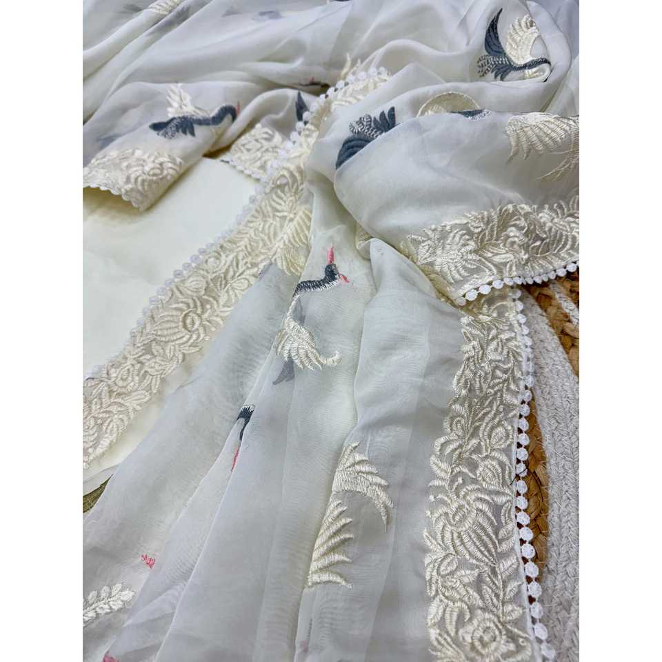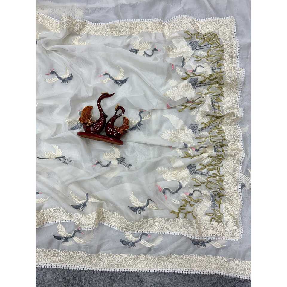 Sari de Diseño con Bordado de Hilo Multicolor, Ropa India y Pakistaní