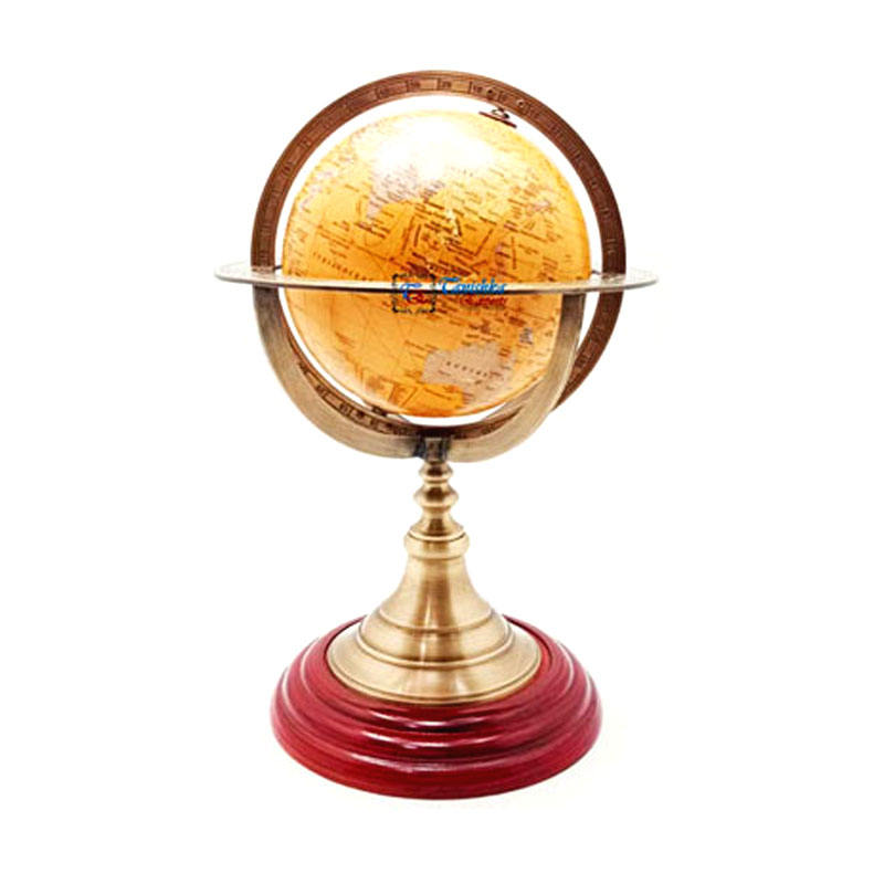 Globo armilar de latón náutico de diseñador, Base hecha a mano de madera, esfera armilar de mesa, coleccionable, el mejor regalo de decoración