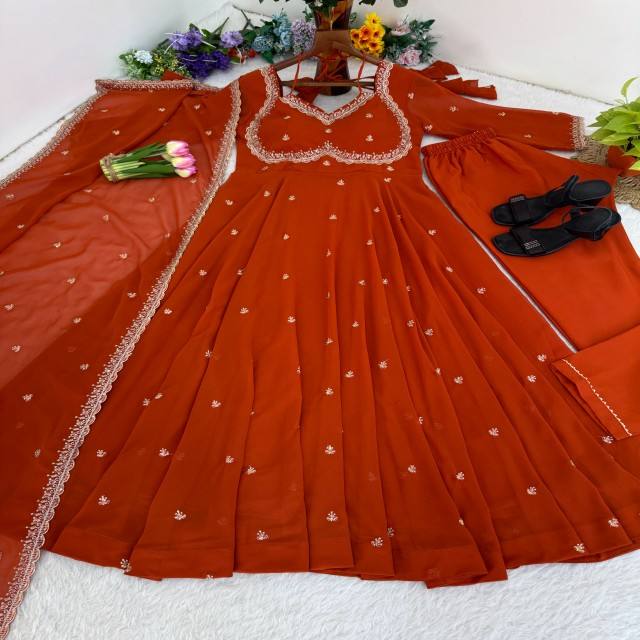 Nuevo Conjunto de Vestido de Fiesta de Diseño en Georgette con Dupatta, Pantalón y Bordado de Lentejuelas y Zari para Mujer