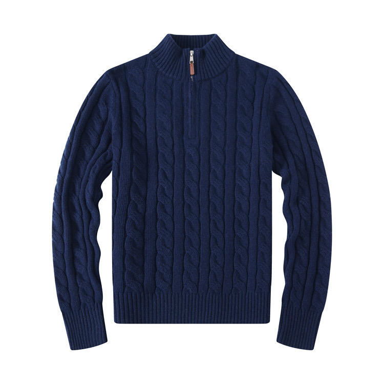 Suéter de Diseño Nuevo con Logotipo Personalizado para Hombre y Mujer, Cuello Alto, Media Cremallera, Informal, Tejido