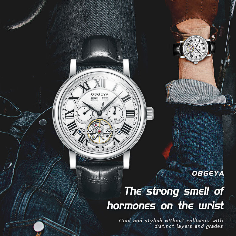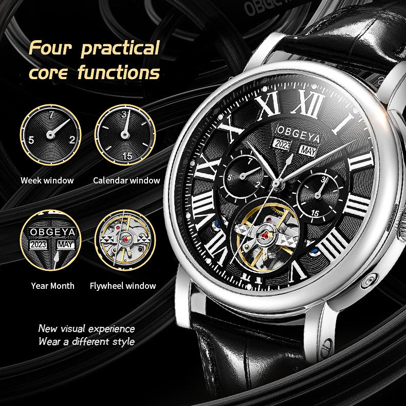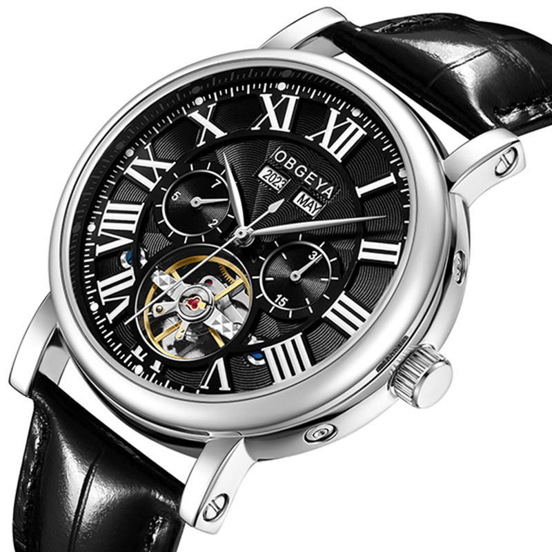 Reloj automático OBGEYA de diseñador para hombre, relojes de moda para caballero, relojes mecánicos impermeables transparentes de alta calidad
