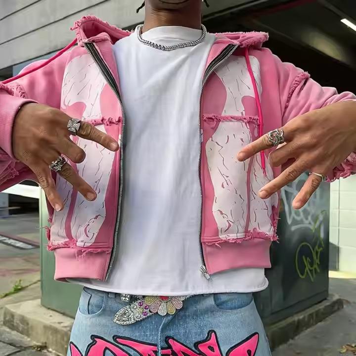 Sudadera con capucha recortada de gran tamaño de diseñador, ropa de calle Unisex de peso pesado, Top corto con estampado abullonado, lavado ácido y logotipo personalizado al por mayor