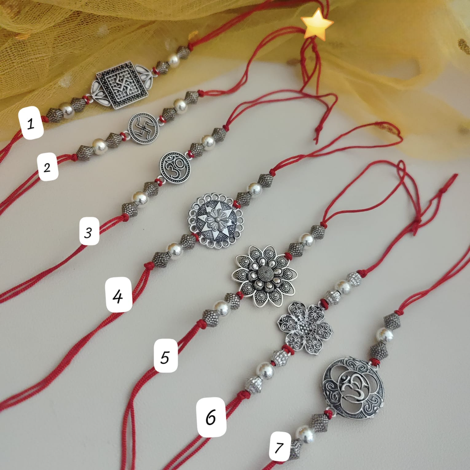 Rakhi de Metal oxidado de diseñador para Brother Single Elegant Rakhi Thread Detalles tradicionales para Raksha Bandhan Festival Gift