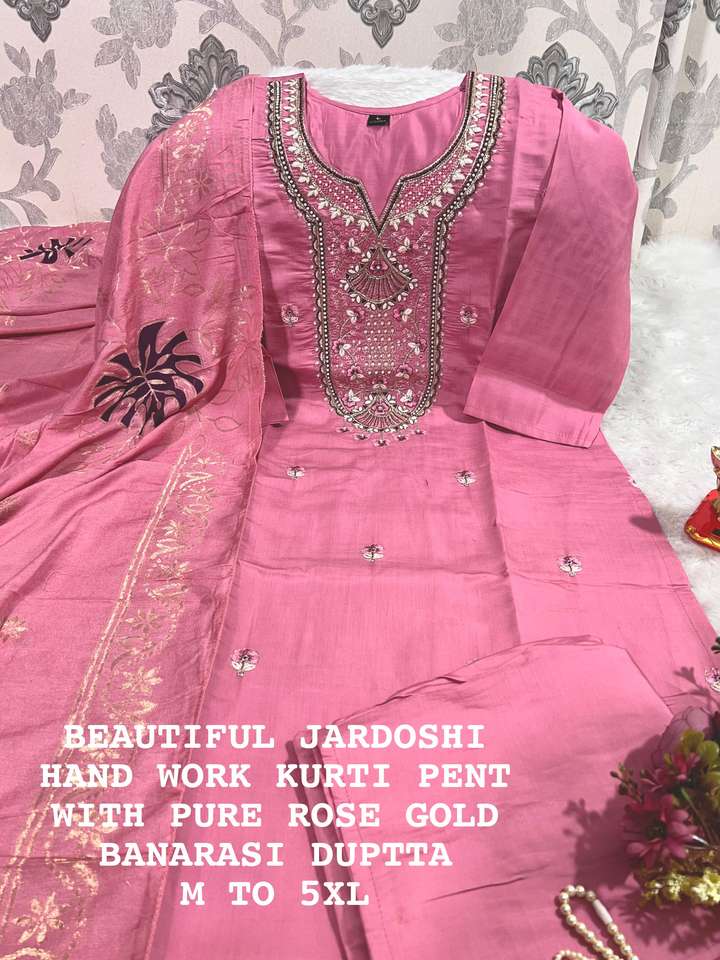 Nombre del producto:Muselina suave y viscosa con trabajo a mano Kurti Pant y Dupatta