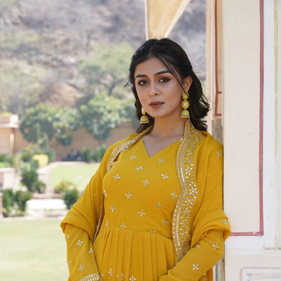 Nombre del producto:Faux Georgette Zari & Secuencia Bordado Vestido & Dupatta
