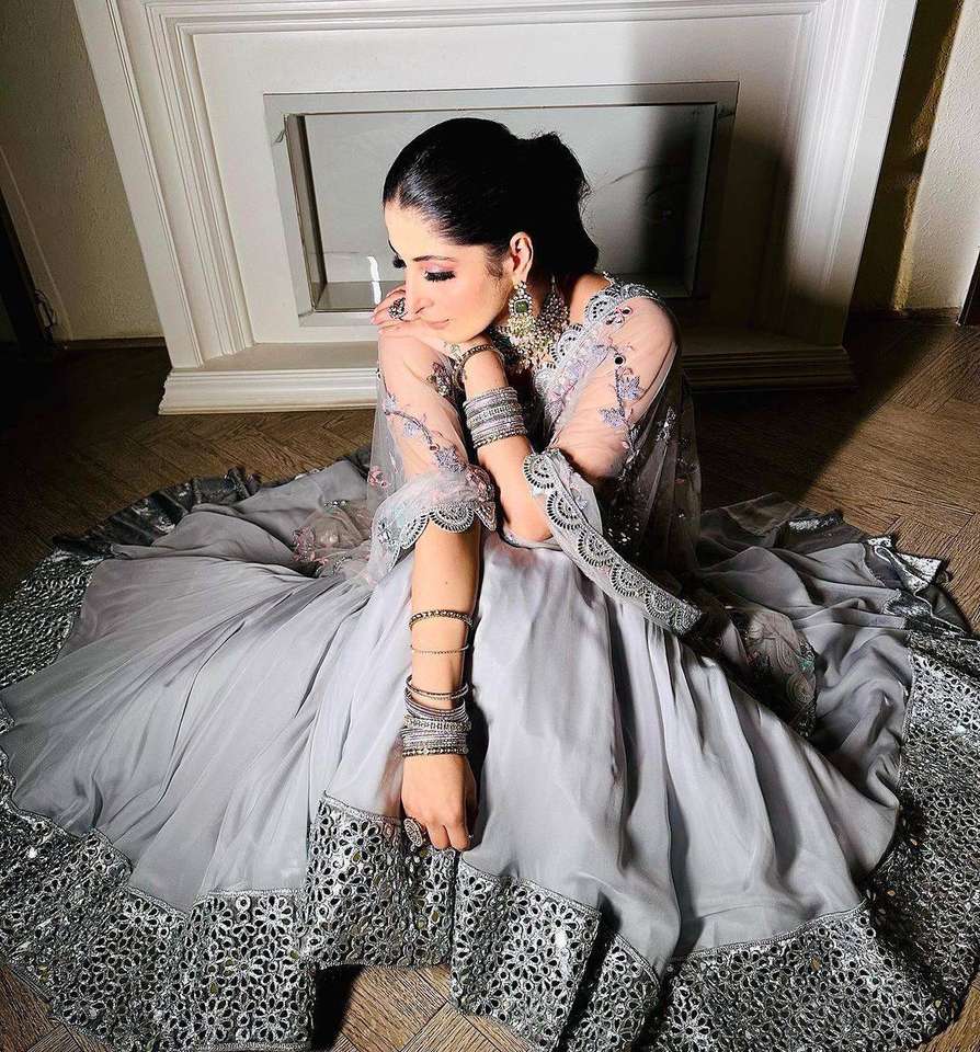 Ropa de fiesta de diseñador Faux Georgette Heavy Sequence Bordado Top de trabajo y Sharara con borde de encaje de cuatro lados Dupatta