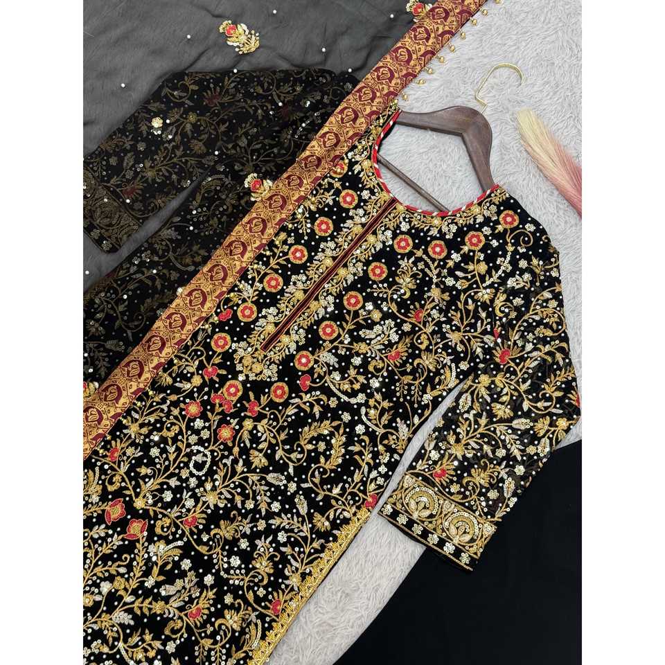 Top Negro de Poliéster de Diseño HK con Dupatta, Estilo Étnico Indio/Pakistaní, Talla M, para Fiestas