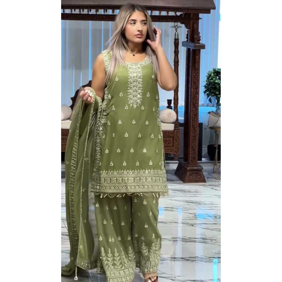 Conjunto de vestidos elegantes Top Plazzo Dupatta para fiesta de diseñador