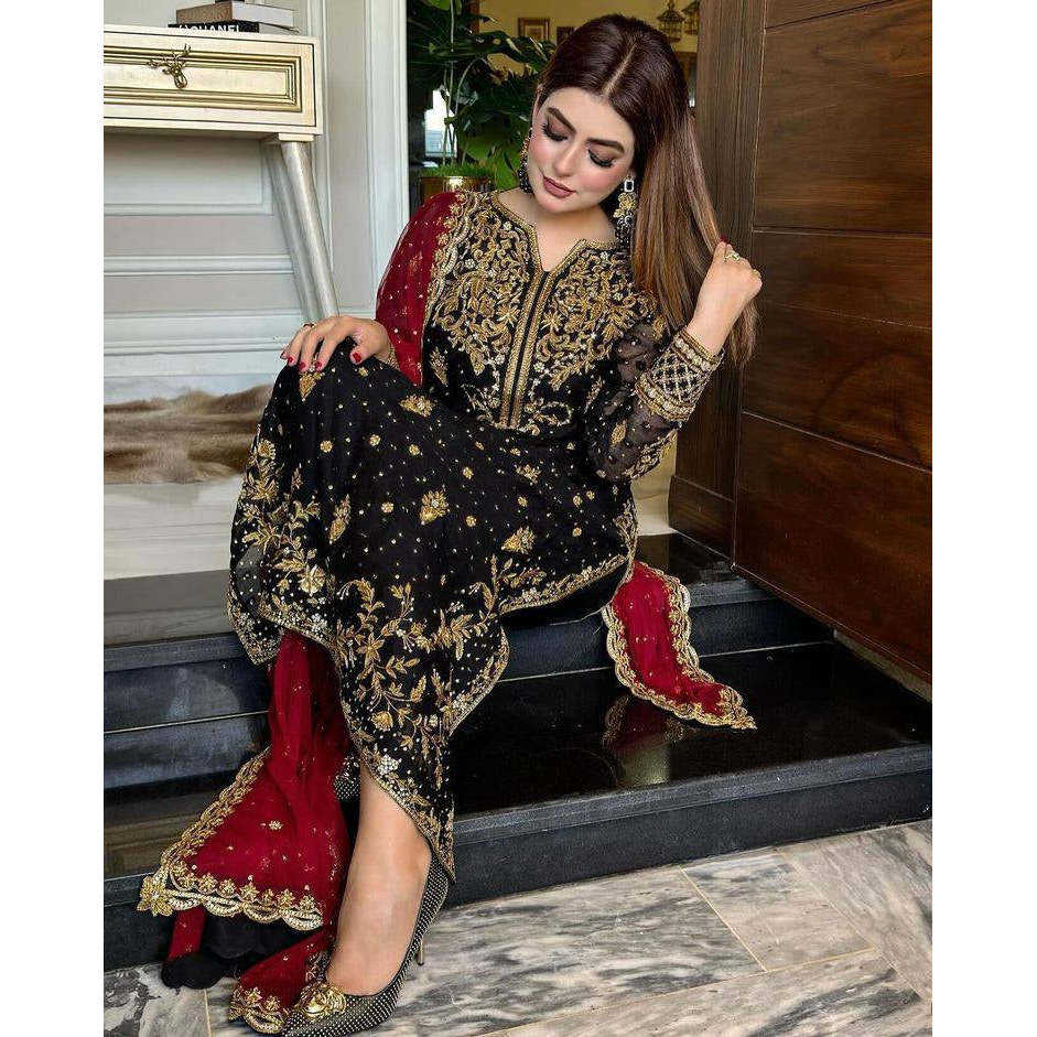 Designer Party Wear Top and Bottom Talla XL-Traje elegante y elegante
