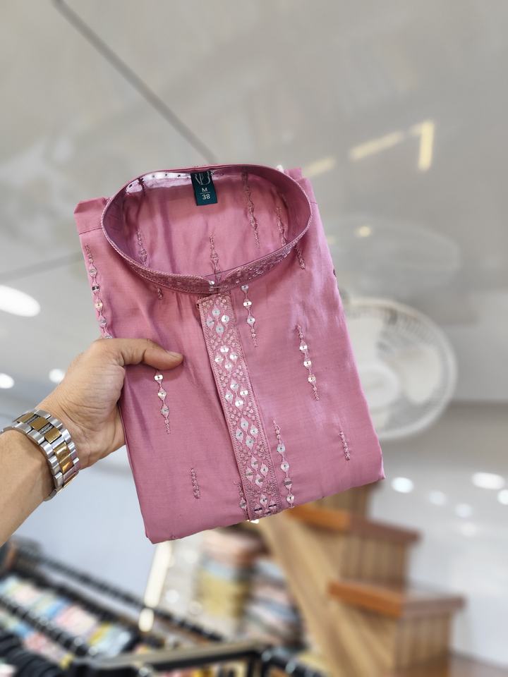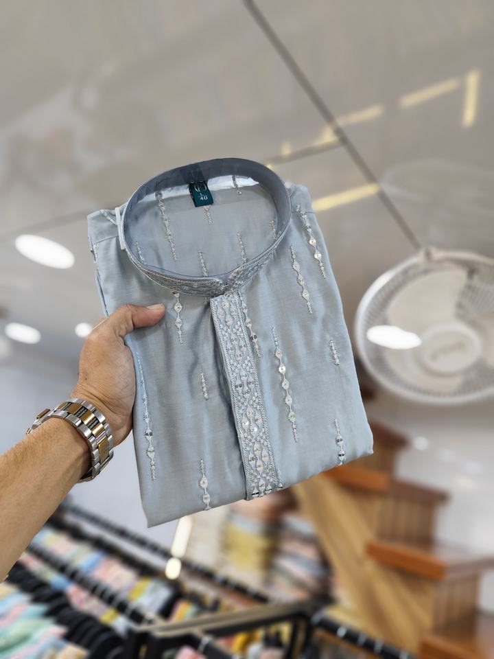 Nombre del producto:Premium pesada seda romana con bordado espejo trabajo hombres Kurta