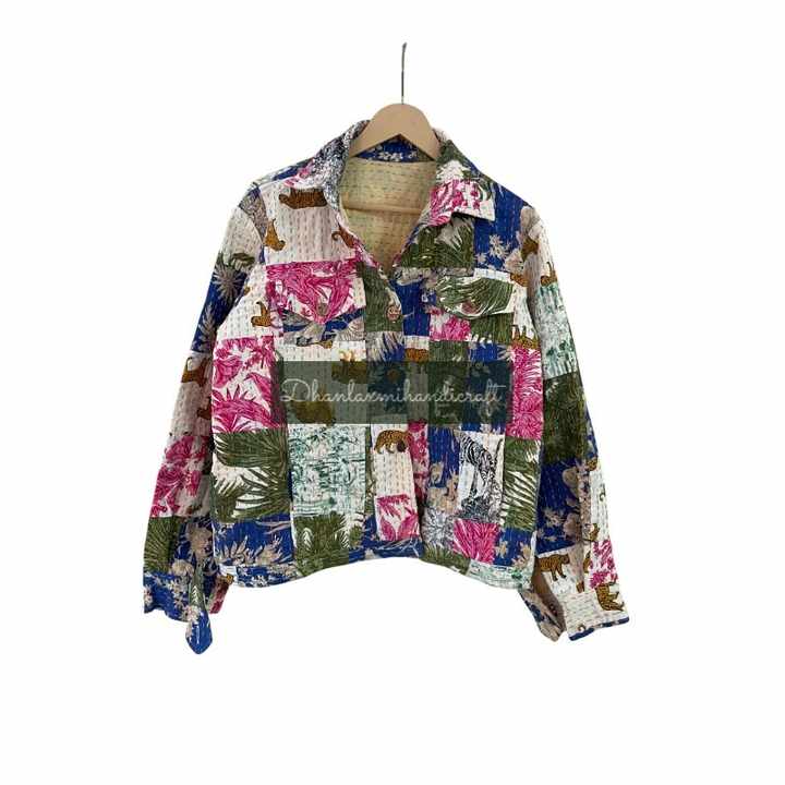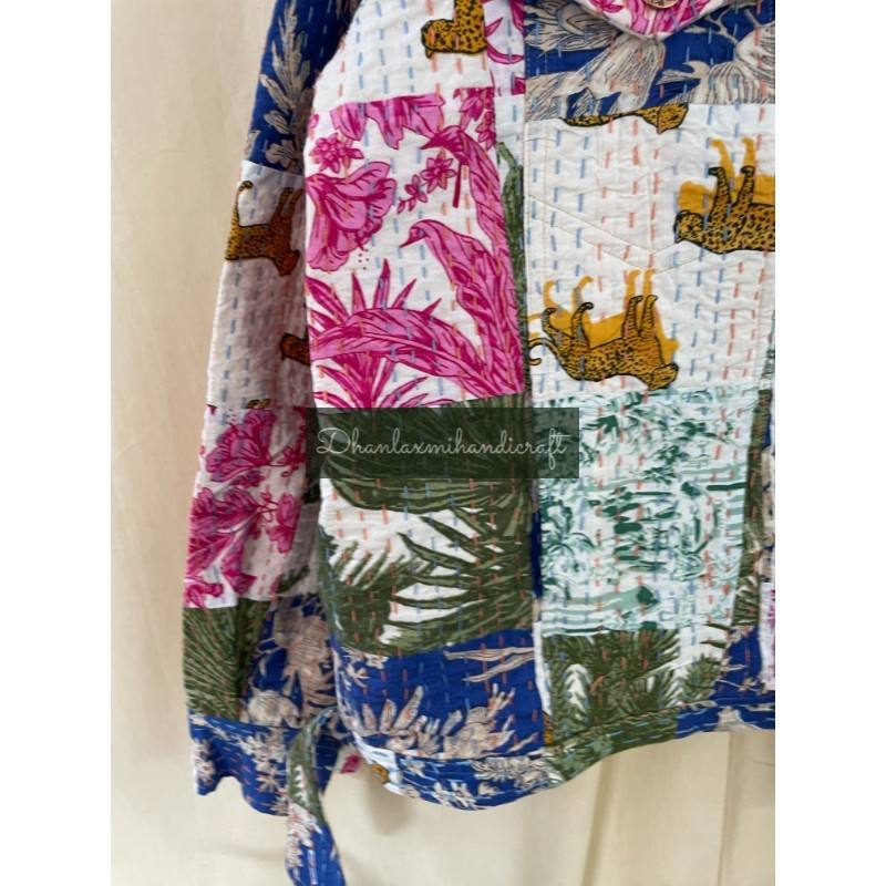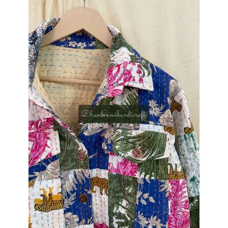 Diseñador Patchwork Vintage Kantha chaqueta 100% algodón hecho a mano verano casa abrigo botón multicolor Denim estilo de talla grande