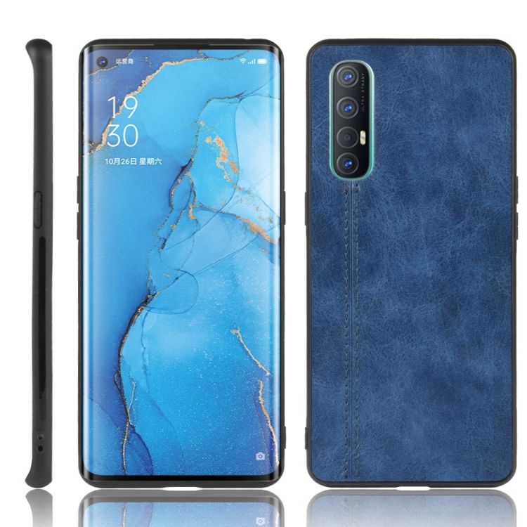 Carcasa para teléfono de diseño para Oppo encuentra X2 Neo a prueba de golpes a prueba coser patrón vaca piel PC + PU + TPU caso (azul)