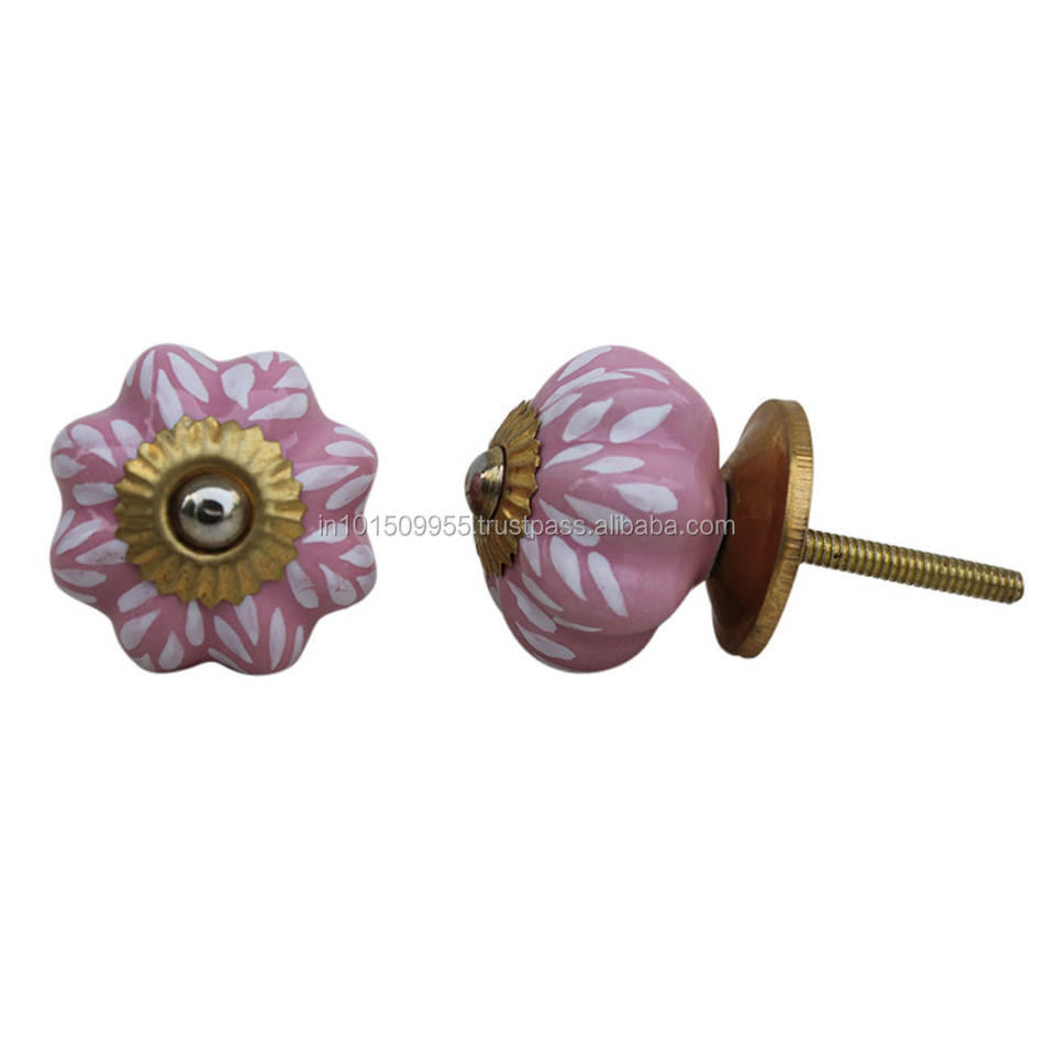Perillas de cerámica hechas a mano de calidad superior para cajón, tiradores para puerta de armario de cocina, color rosa, venta al por mayor, CK-1077