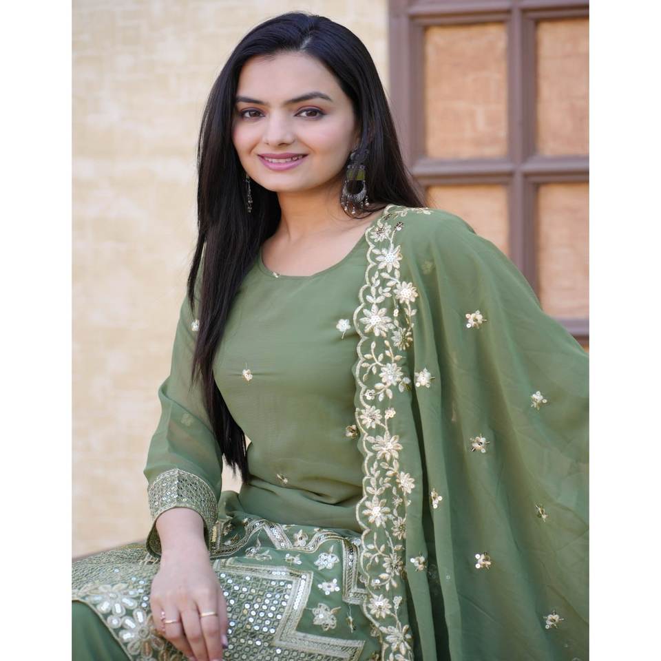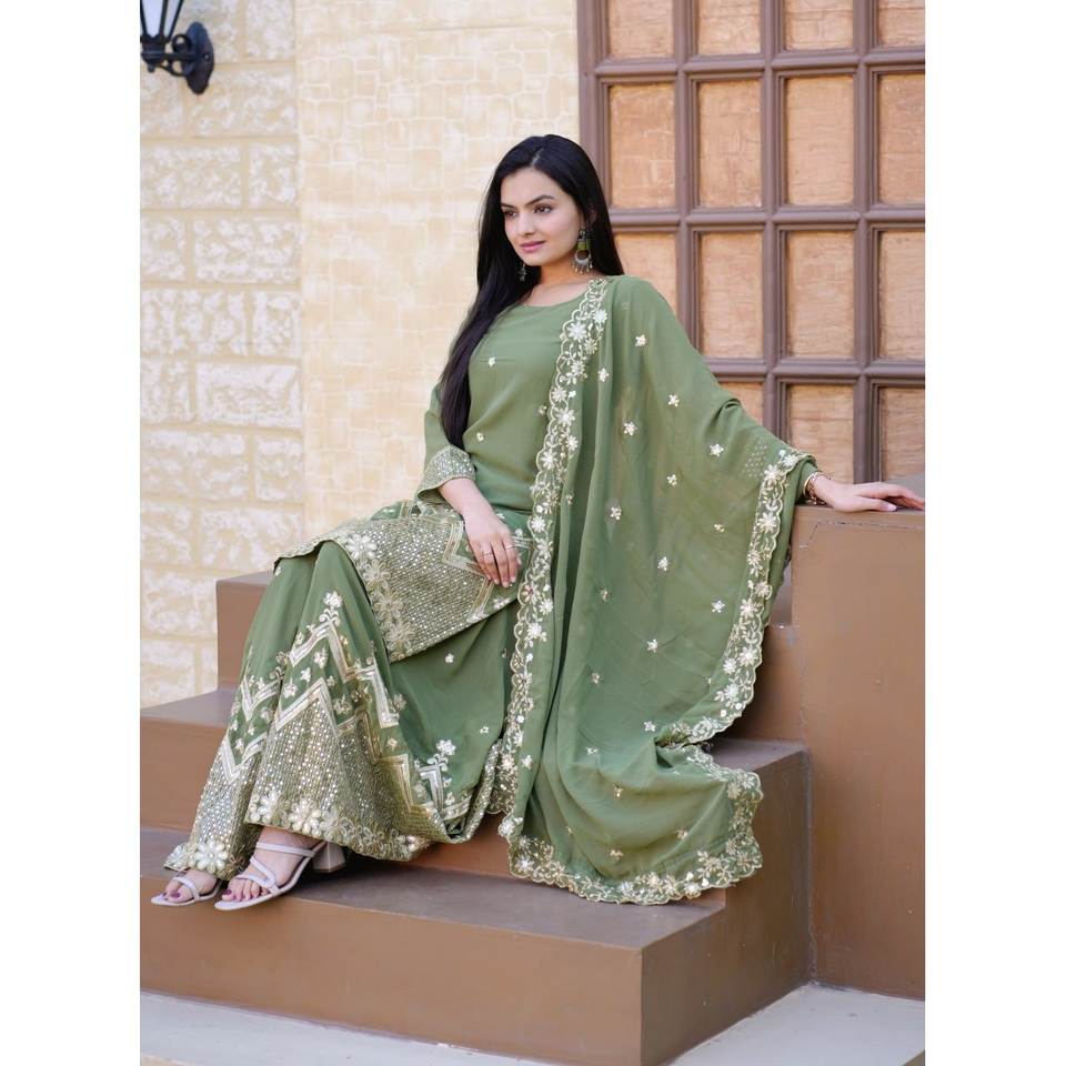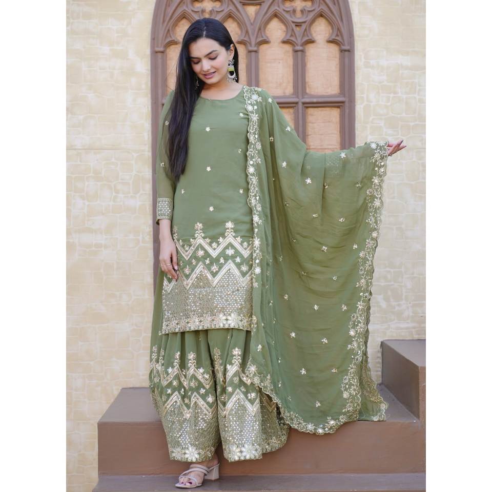 Traje Sharara de Poliéster de Diseño con Bordado de Lentejuelas para Boda, Tipo Salwar Kameez