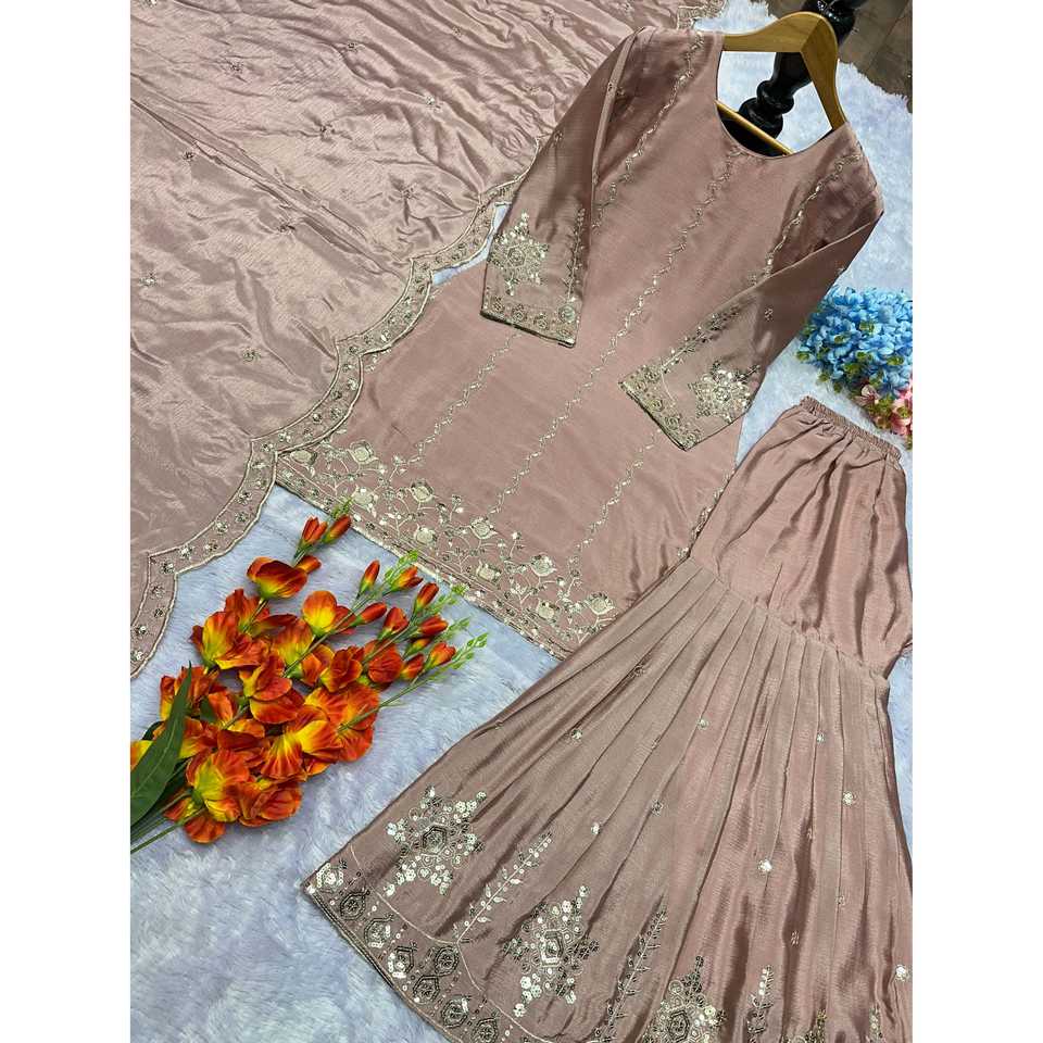Conjunto de Salwar Kameez Elegante con Top Sharara de Poliéster de Diseño y Hermosa Dupatta para Fiestas
