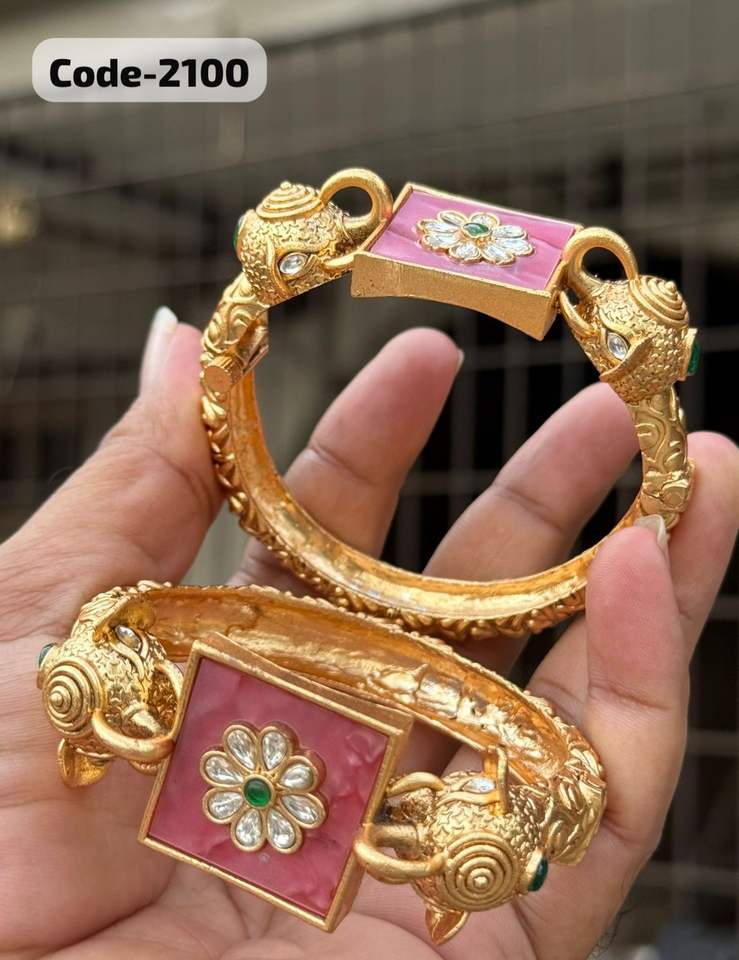 Brazaletes de latón Rajwadi de diseñador con aspecto antiguo y trabajo con tachuelas de piedra múltiple, ideales para novias, damas de honor y fiestas