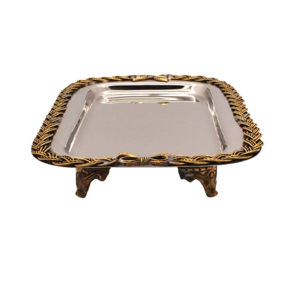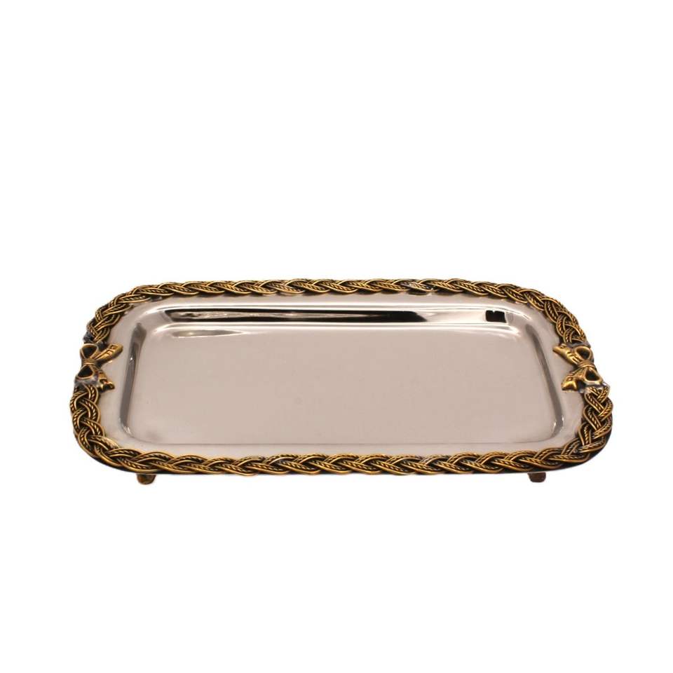 Bandeja Rectangular de Diseño para Interiores de Hogares Elegantes, Hoteles Boutique y Restaurantes, Plato de Servir Metálico Clásico